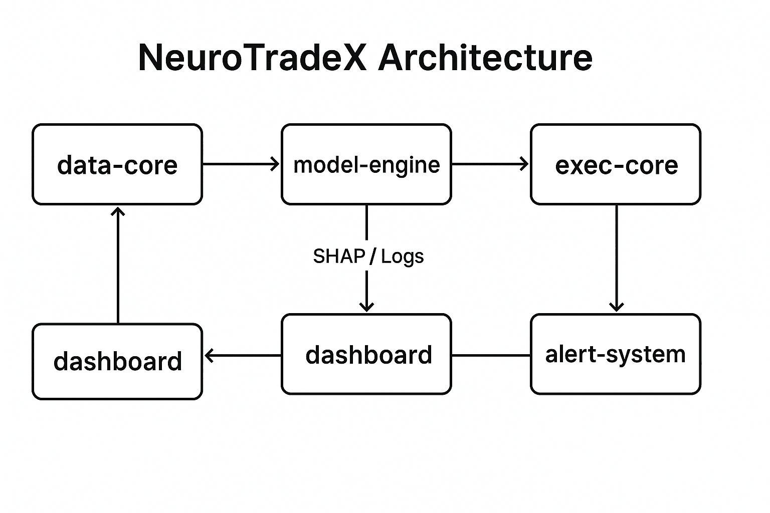 NeuroTradeX is an advanced, modular trading platform designed for real-time, explainable AI in financial and crypto markets. It was built with a focus on transparency, security, extensibility, and performance — combining technologies like LSTM, Transformers, SHAP, WebSocket streaming, Dockerized services, and real exchange integrations.